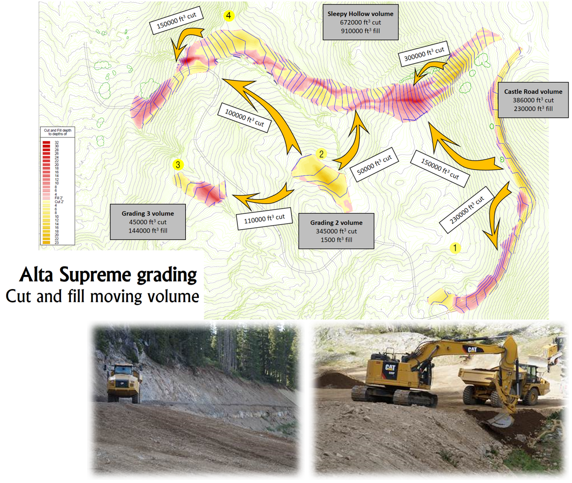 Création d’une piste débutante de retour depuis le sommet (faisant aussi office d’accès aux engins pour la construction du télésiège);