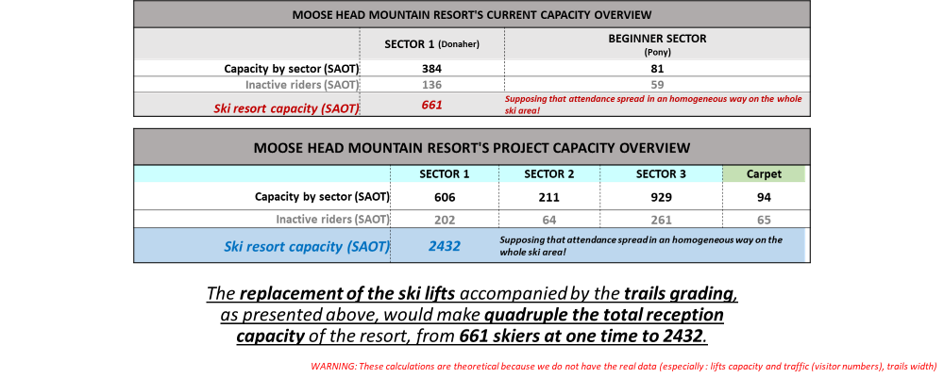 Le , tel que présenté dans nos études, ferait quadrupler la capacité d’accueil totale de la station, passant de 661 skieurs à la fois à 2432.