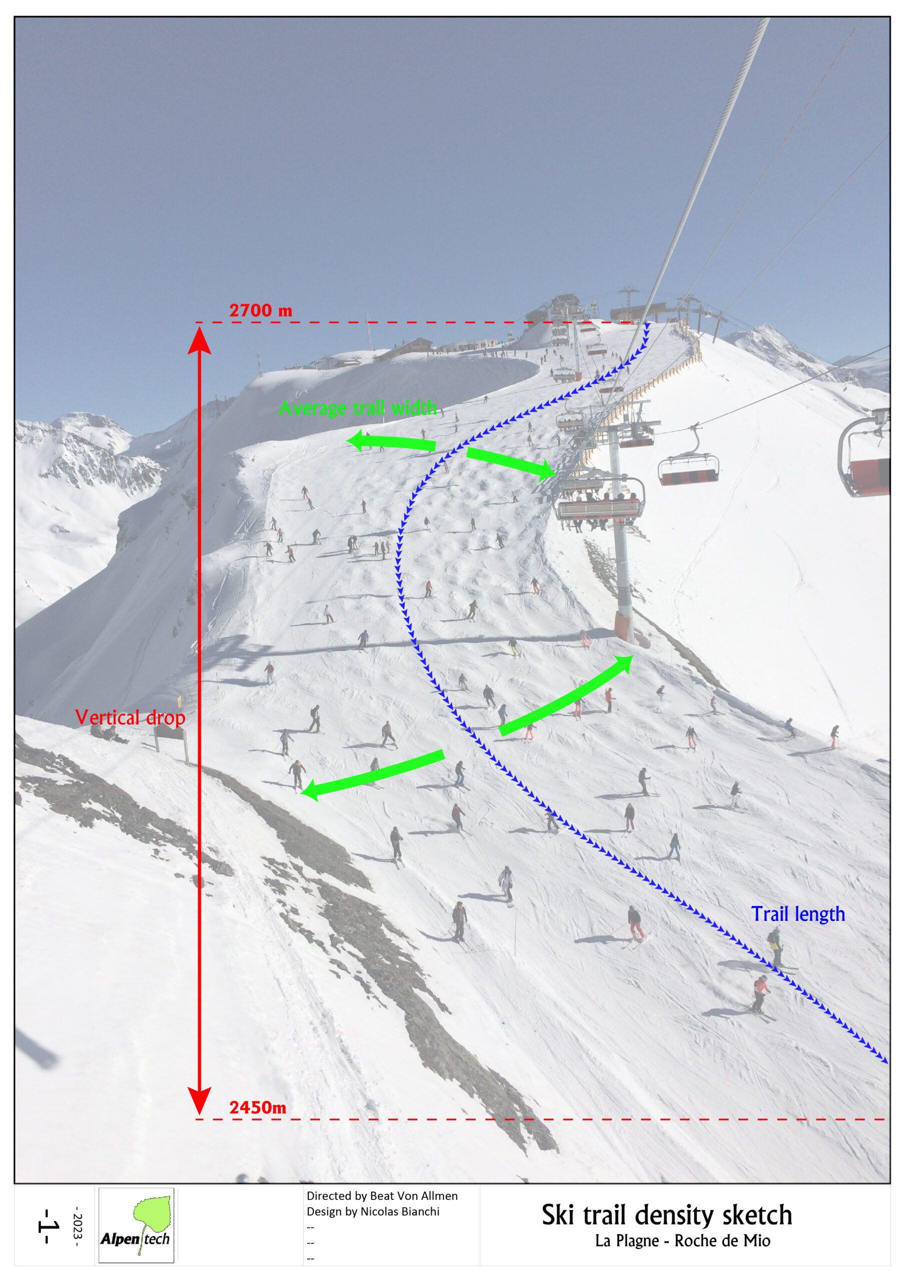 Vous trouverez ci-dessous un outil de calcul permettant d’évaluer le nombre de skieurs que peut accueillir une piste de ski. Pour cela, il suffit de saisir la longueur, la largeur moyenne et la dénivelée de la piste.